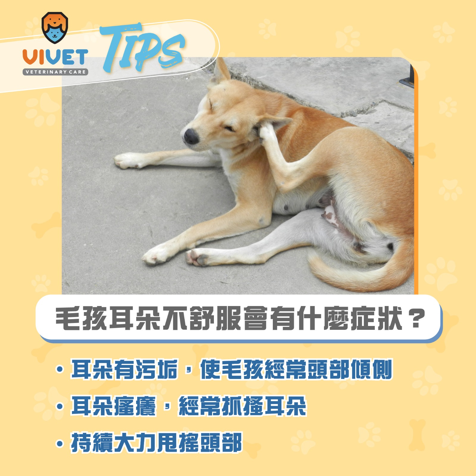 溫馨提示:毛孩日常的耳朵護理容易被忽略,若稍不注意,會造成耳道發炎的風險。 如發現炎症持續惡化,請向註冊獸醫求助。