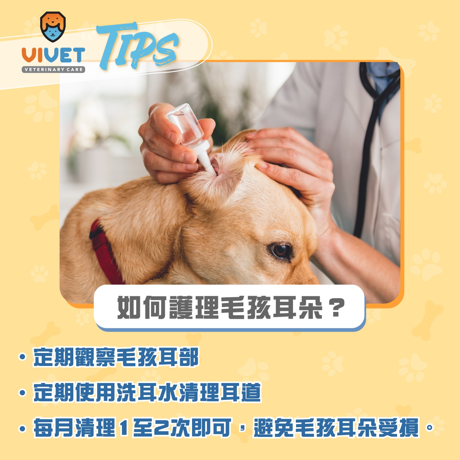 - 定期觀察毛孩耳部