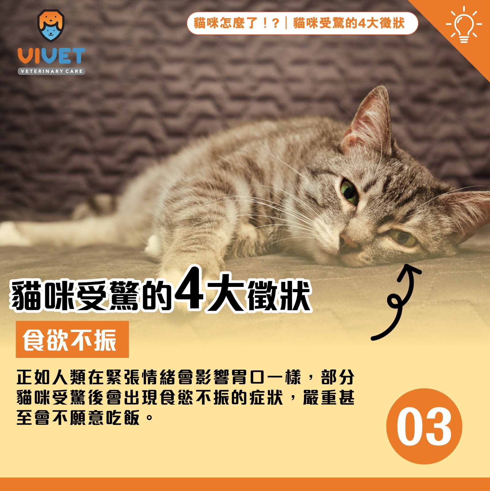 正如人類在緊張情緒會影響胃口一樣,部分貓咪受驚後會出現食慾不振的症狀,嚴重甚至會不願意吃飯。