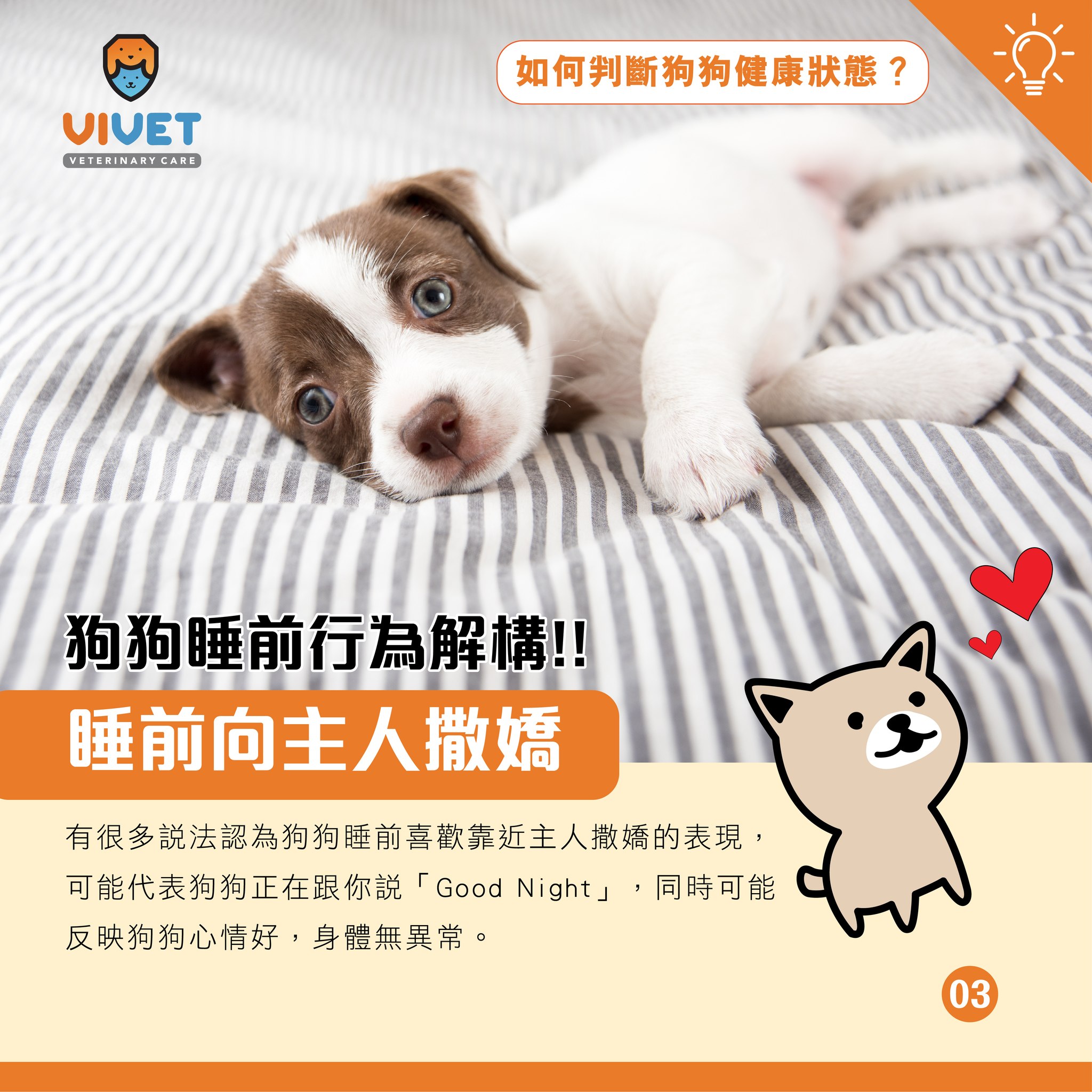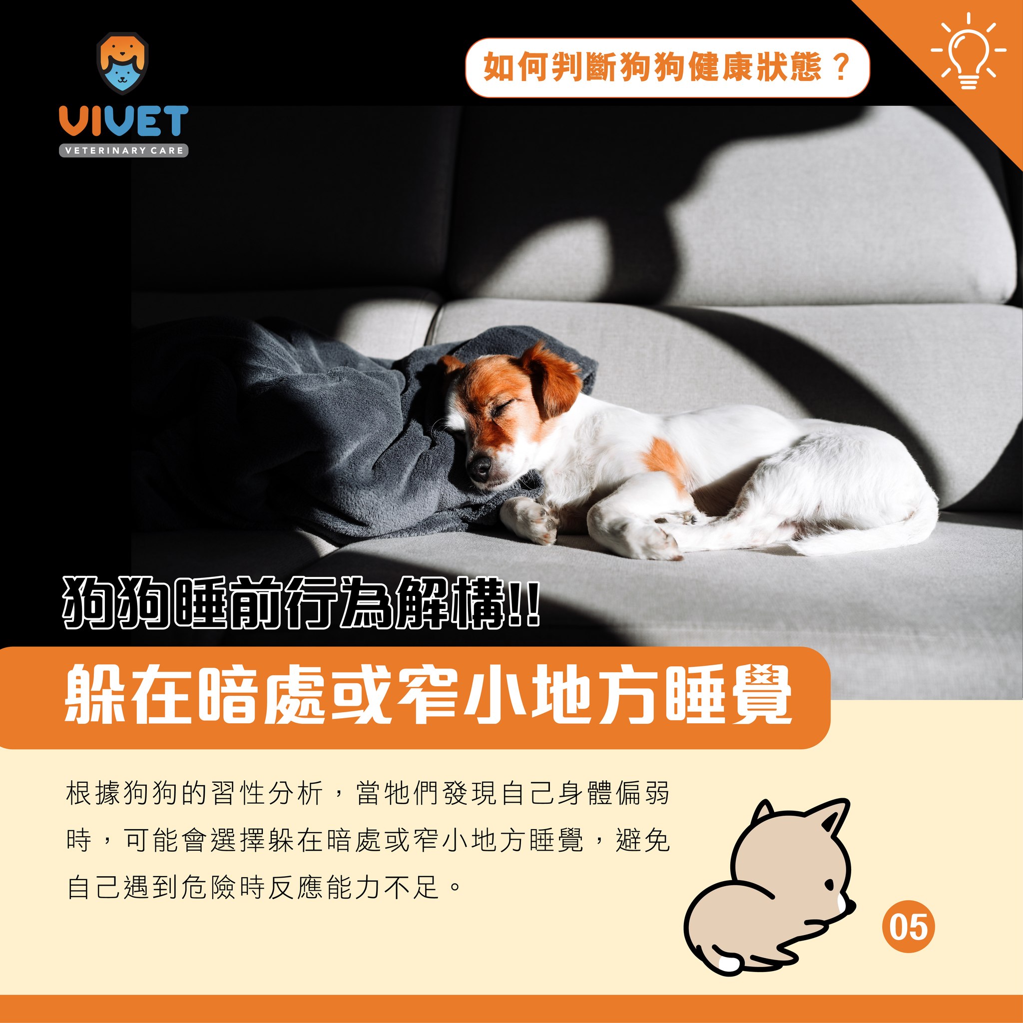 **溫馨提示:以僅供娛樂及參考,讓寵物睡前行為異常的因素眾多,如有疑惑,可向註冊獸醫師作進一步諮詢。