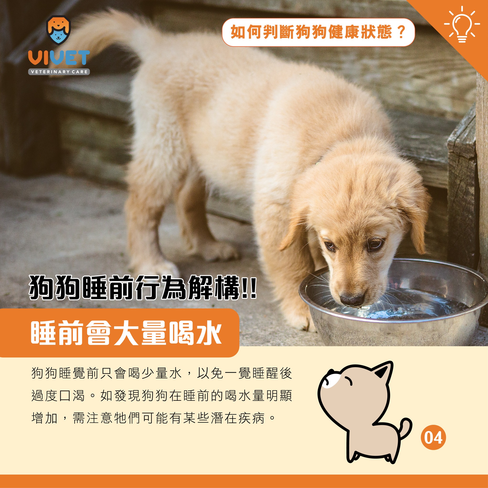 狗狗睡覺前會喝少量水,以免一覺睡醒後過度口渴。如發現狗狗在睡前的喝水量明顯增加,需注意牠們可能內分泌過多或有某些潛在疾病。