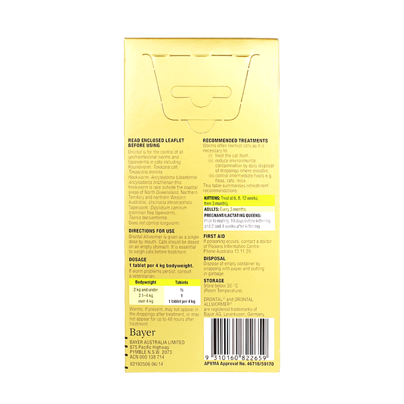 Drontal Cat 杜蟲丸 (貓) (每4kg服1錠)